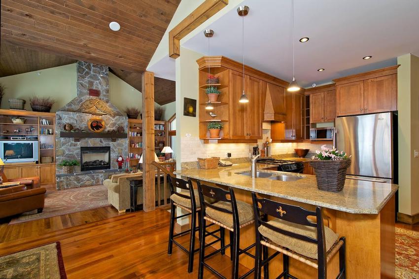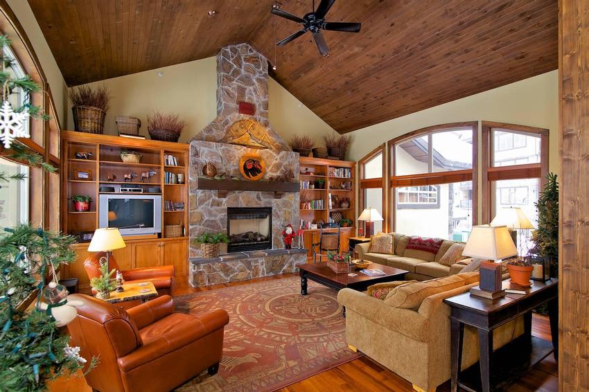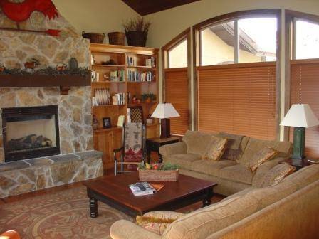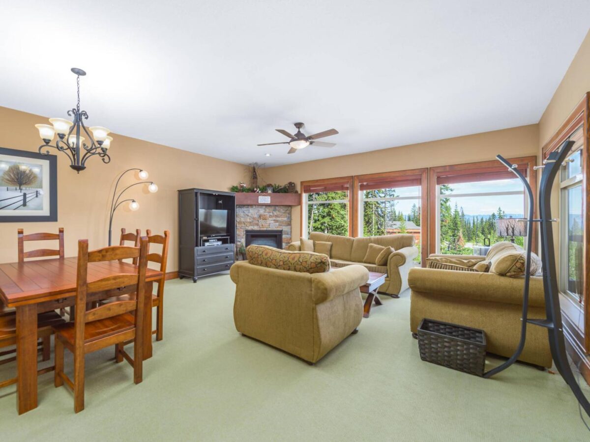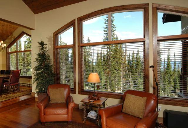 - Vaulted ceilings and large picture windows with mountain views