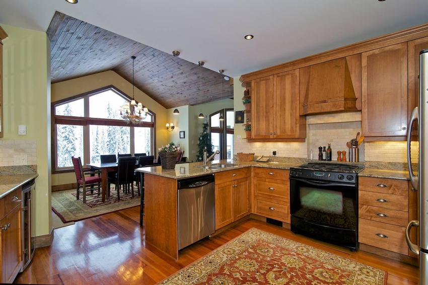 The fully equipped gourmet kitchen will delight the chef in your group, featuring stainless steel appliances, a gas range, a large pantry, and even a full wet bar. From the dining area or master suite, step out onto the impressive 24-foot private deck, complete with a BBQ and a six-person hot tub — the perfect spot for après-ski relaxation under the stars.