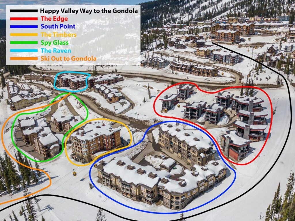 This is a great area to stay as it provides direct, easy access to all the main restaurants and bars on the mountain, the shops, and the tickets/rental facilities in the Village Center Mall. The Village Centre also has great ski-in/ski-out access. Most of the family-friendly activities are located down in Happy Valley, which can be accessed from the Village via the Gondola, or via a short walk on Happy Valley Way. Take a look at our Village Center rental homes here!