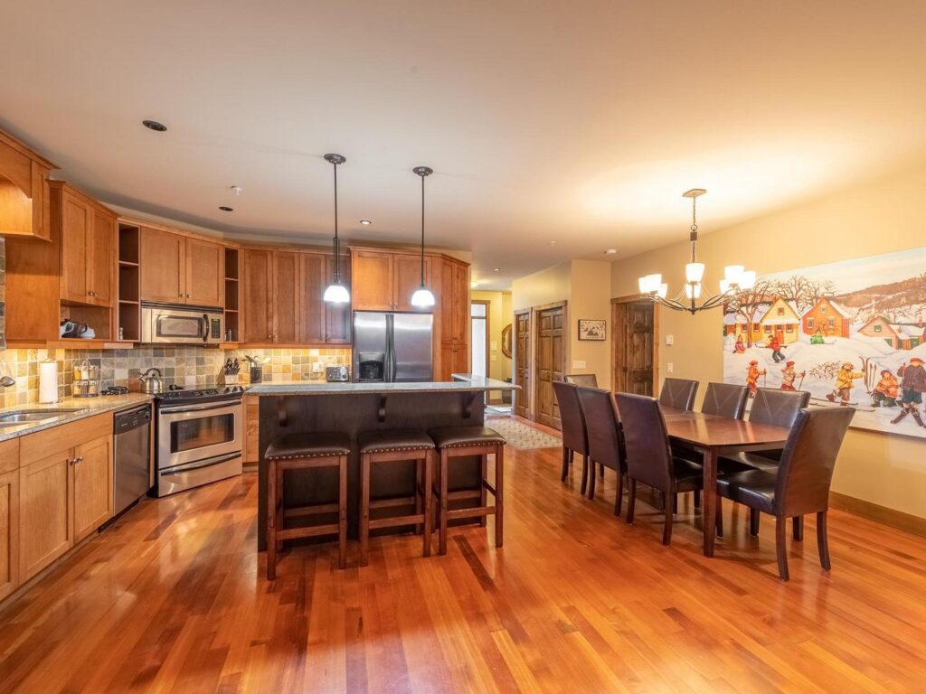 Guests are drawn to Southpoint 22 not only for its unbeatable ski-in/ski-out location but also for the perfect balance of luxury and warmth it provides. The great room’s soaring fireplace and picture windows create a cozy yet grand space to gather, while the private hot tub offers a serene spot to take in mountain views under the stars. Families and friends alike appreciate the thoughtful amenities—like TVs in every bedroom, a fully stocked gourmet kitchen, and the indulgence of a steam shower after a day on the slopes. With everything from secure heated parking to easy access to the village and lifts, this home makes every stay effortless and unforgettable.