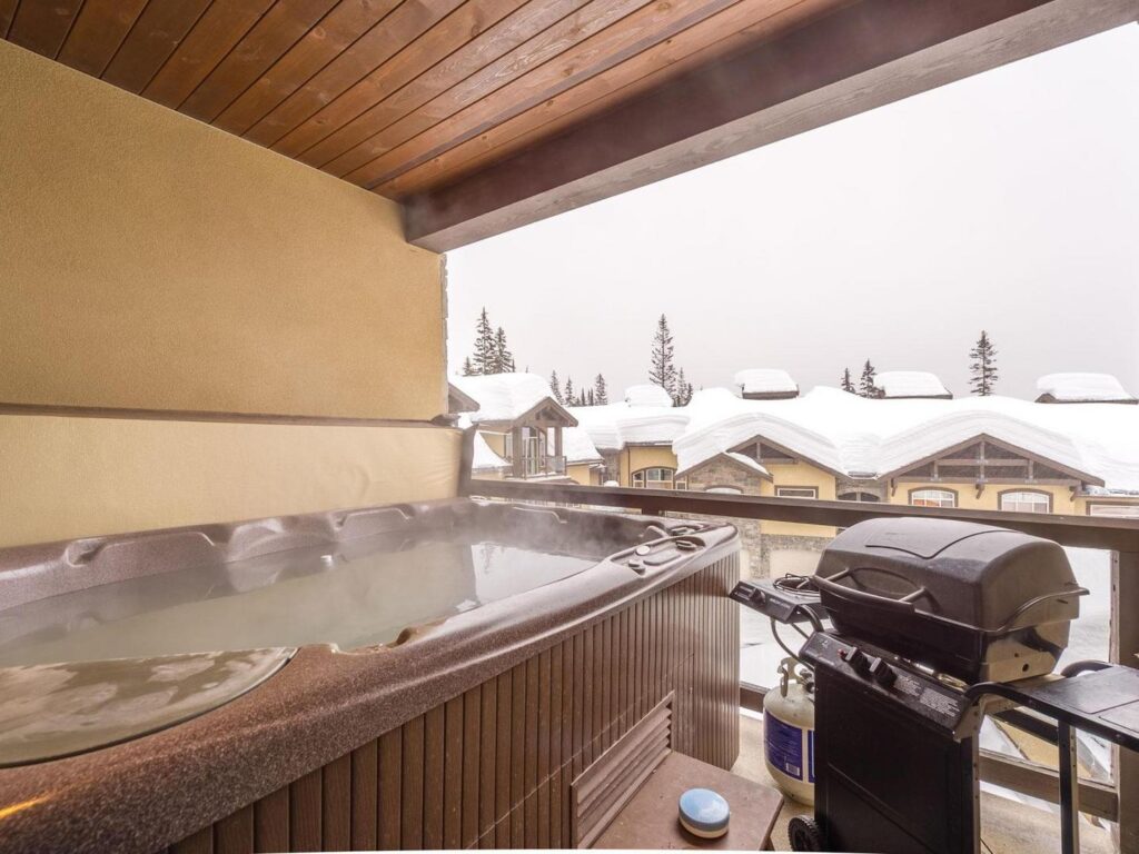 After skiing right to your back door, step onto your private covered deck to soak in the hot tub or fire up the BBQ. Two luxurious bathrooms feature heated floors, with the master ensuite boasting a relaxing steam shower. The home also includes a heated secure parking stall, in-suite laundry with complimentary supplies, and free high-speed Wi-Fi to keep you connected.